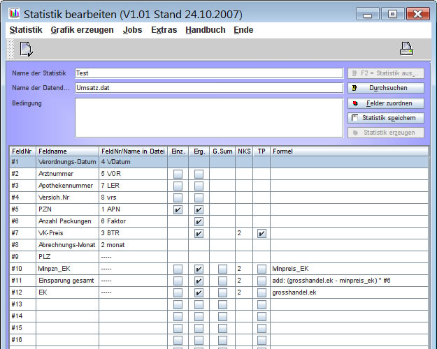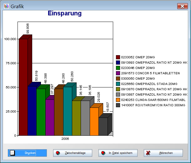 In Medikstat haben Sie die Möglichkeit, durch frei definierbare Formeln beliebige individuelle Statistiken zu erzeugen. Die mögliche Einsparung und andere statistische Werte können nicht nur zum aktuellen Zeitpunkt sondern zu jedem beliebigen Zeitpunkt in der Vergangenheit berechnet werden.